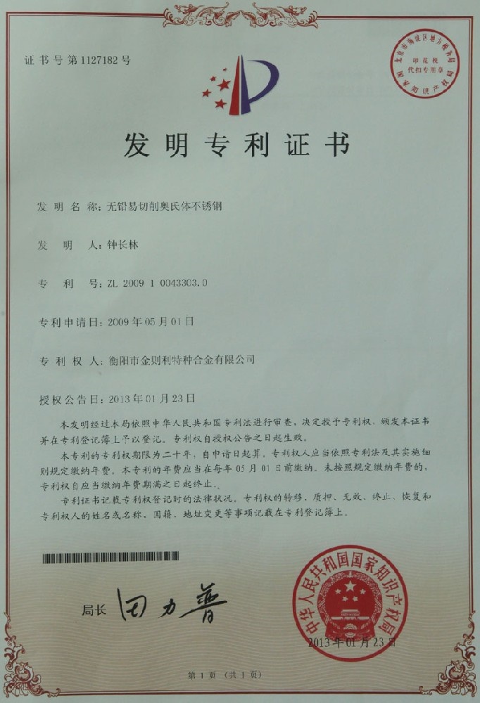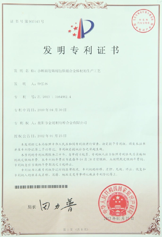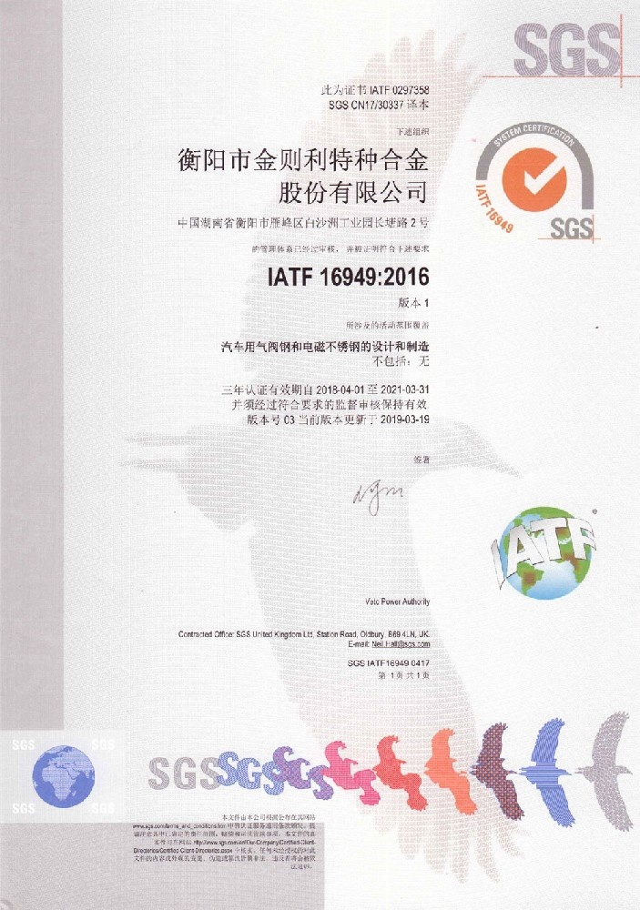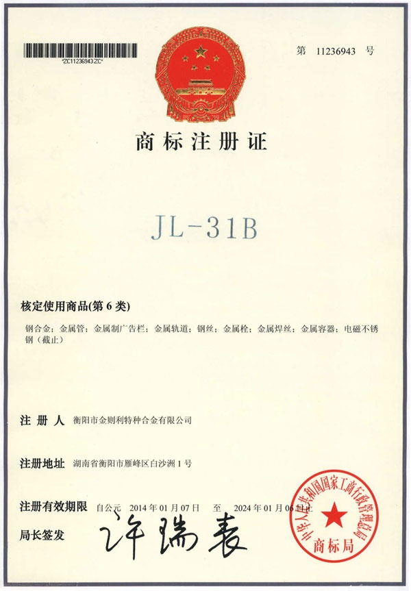 衡阳市金则利特种合金股份有限公司成立于一九九九年十二月,注册资本人民币两千两百万元。注册地址:衡阳市雁峰区白沙洲工业园长塘路2号。公司主营耐蚀软磁合金,为湖南省高新技术企业。公司自成立以来,即致力于耐蚀软磁合金的研发。 研制出的JL-31(00Cr13si2Pb)、JL-31B(00Cr13si2)、JL-31BS(00Cr13Si2S)、JL-37B(0Cr17Si2)、JL-37(0Cr17···
